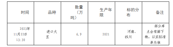11月22日进口大豆竞价销售交易公告