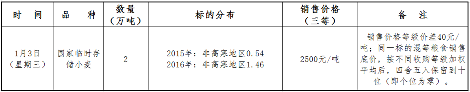 2024年1月3日国家临时存储小麦竞价销售交易公告